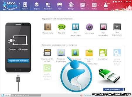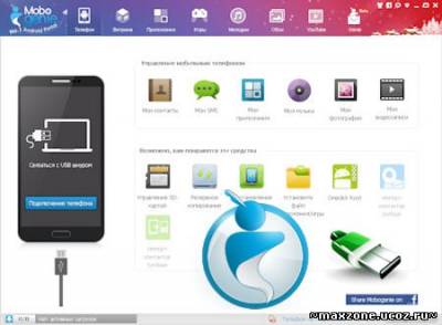 Mobogenie - это бесплатное приложение, позволяющее пользователям компьютера под управлением операционной системы Windows подключаться к переносным устройствам, работающим на базе системы Android. Подключение осуществляется посредством кабеля USB, при этом, по сути, происходит синхронизация стационарного компьютера c подключенным устройством. Все содержимое телефона с