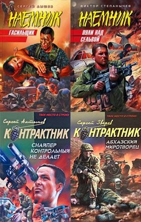 Здесь объединены две книжные серии издательства "Эксмо": Наемник и Контрактник. Серии органично добавляют друг друга, при этом произведения вообще не повторяются. Боевые приключения наших военных спецов по всему миру! Список книг: Алтынов. Неуязвимые Алтынов. Омерта десантника Алтынов. Предателей казнят без приговора Алтынов. Снайпер контрольный не делает. Последний бой наемника Гончар. Ангел-хранитель Гончар. Ключ к смерти Гончар. Отборные силы