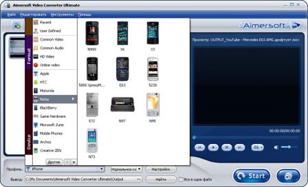 Aimersoft Video Converter Ultimate — полный набор инструментов для скачивания он-лайн видео, конвертирования видео, в том числе HD видео, редактирования видео, субтитров и дальнейшая запись на DVD или USB устройство. Конвертер видео отличается приятным и очень удобным интерфейсом, имеет встроенный проигрыватель, а также готовые настройки для конвертирования в форматы, воспроизводимые на таких устройствах как iPhone, iPhone 3G, iPhone 3GS, iPhone 4, iPhone 4HD, iPod, iPad, Apрle TV HD, Motorola (Droid X, Droid, i1, XT720, Milestone, CLIQ, CLIQ XT, DEVOUR, Flipout, BACKFLIP, DEXT, Quench), Nokia (N900, X6, X3, 5800 XpressMusic, E63, 5230, E72, N97, N95, N73), BlackBerry (Tour series, Storm series, Bold series, Curve 8900, Curve 8500, Curve 8300, Curve 8310, Pearl Flip, Pearl 8800, Pearl 3G, Pearl 8100), Game Hardware (PSP, PS3, PS3 HD, Xbox 360, Xbox 360 HD, NDS), Microsoft Zune, Mobile Phones (Nexus one, Samsung i7500, Pocket PC, Palm Pre, HP IPAQ, Palm Pixi, Samsung Behold, Samsung Moment, LG Xenon GR500, LG KP500, Sony Ericsson XPERIA x10), Archos, Creative ZEN, Sandisk Sansa, Media Players (SONY Walkman, Dell Players, iRiver P7, iRiver SPINN, iRiver E100).